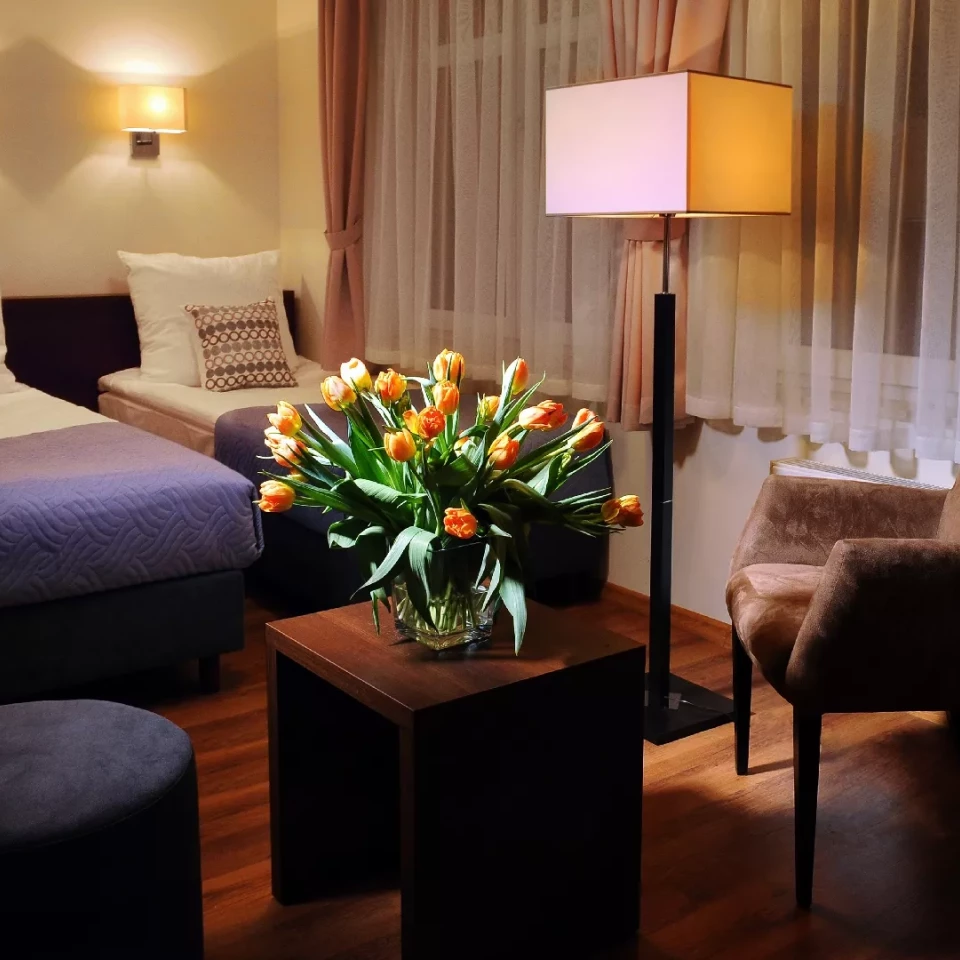 - łóżka typu double lub twin z możliwością dostawki