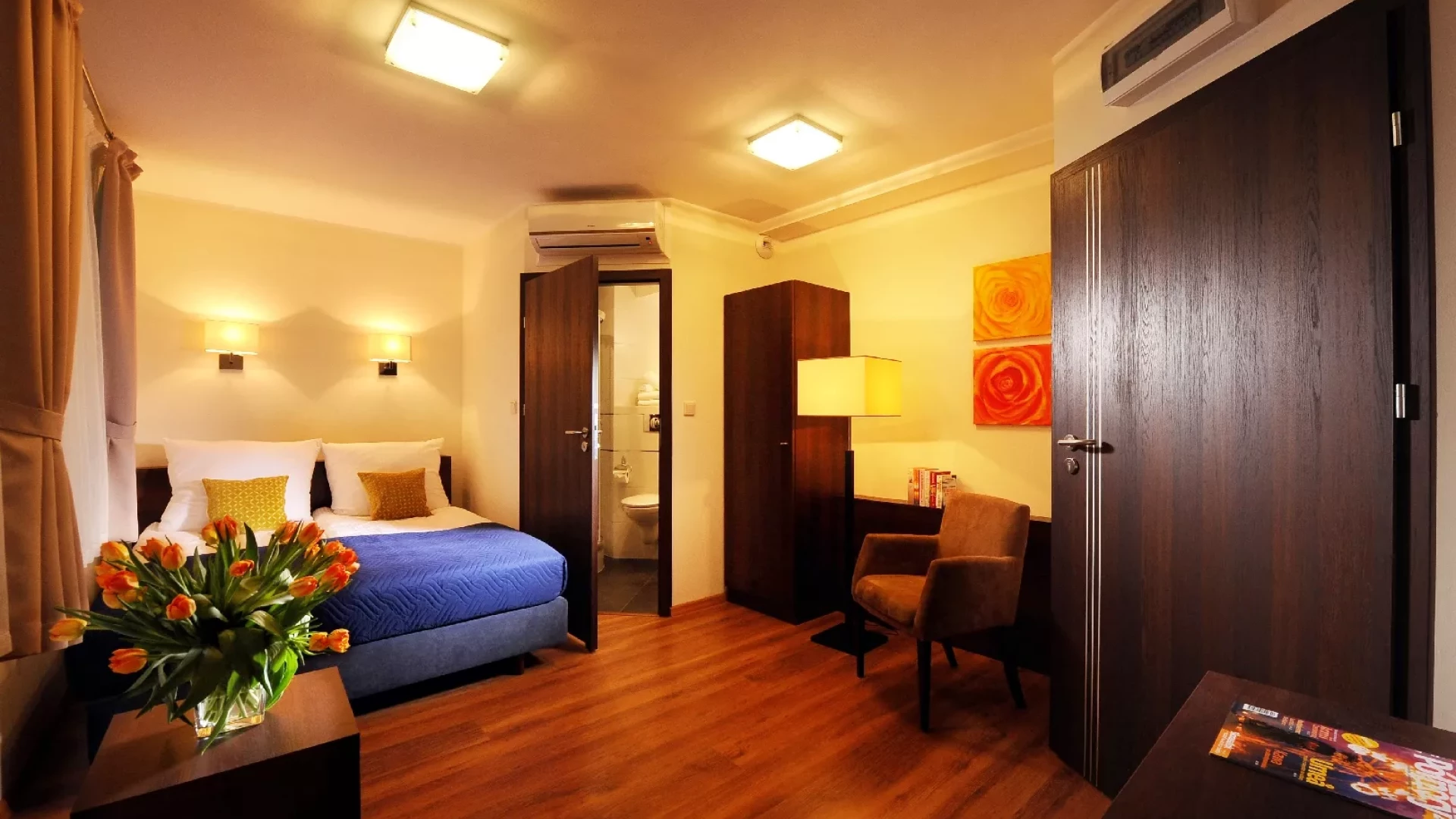 Pokój z podwójnym łóżkiem. Wyposażony w biurko z krzesłem, fotel lub sofę, telewizor LCD, minilodówkę, klimatyzację, kosmetyki hotelowe, szlafrok, kapcie, suszarkę, wodę mineralną, zestaw do przygotowania kawy i herbaty. Łazienka posiada prysznic. Dostępne bezpłatne, szybkie Wi-Fi. Pokój z widokiem na ogród lub miasto.