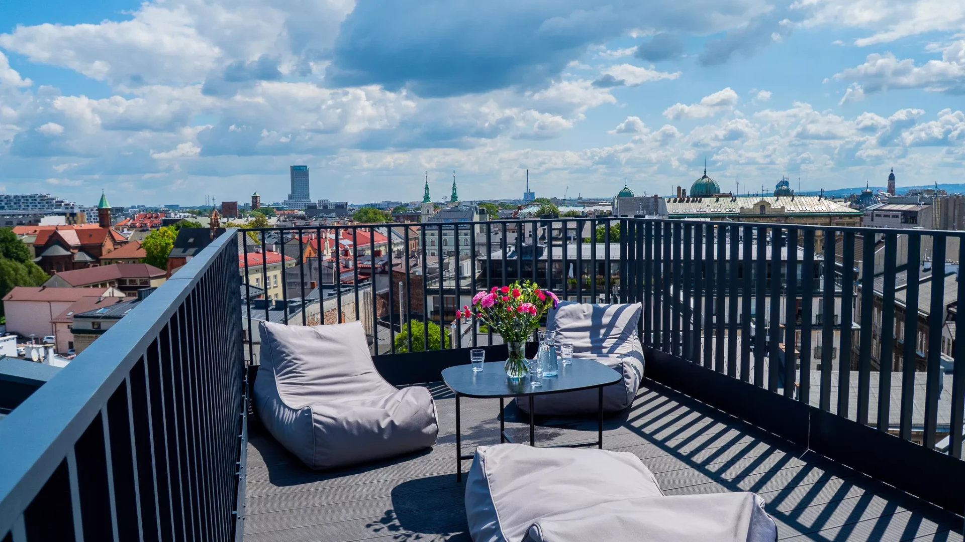 The Superior Apartment with a roof terrace is a unique place where you can feel like a star from the film ‘Vinci’ and observe the entire city from above. The comfortable and spacious room with beautiful, modern décor ensures perfect relaxation, while the terrace offers unforgettable views and experiences. Guests have at their disposal a seating area equipped with a sofa and coffee table, as well as a kitchenette with a dining area. The terrace has a set of garden furniture to make your stay more enjoyable.