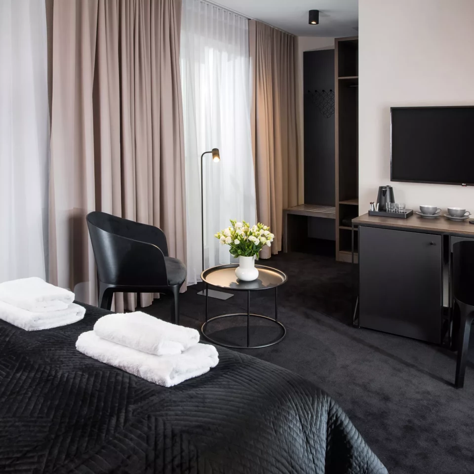The hotel also has a restaurant that serves delicious plate breakfasts from all over the world, vegan options, as well as a delicious sweet buffet. In addition to the amazing qualities that the hotel boasts, another plus is the beautiful surroundings, where you will find the new Wislawa Szymborska Park or the Malopolska Art Garden.