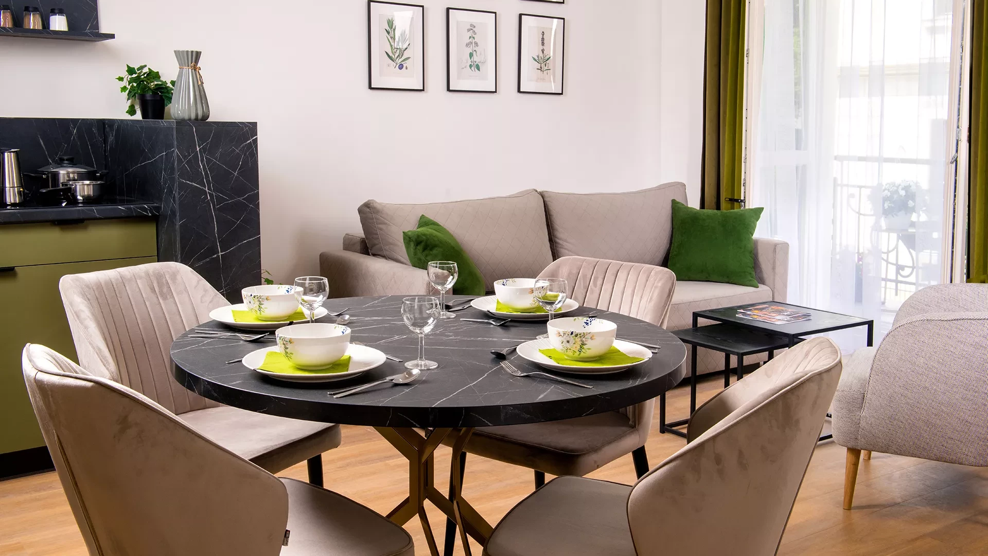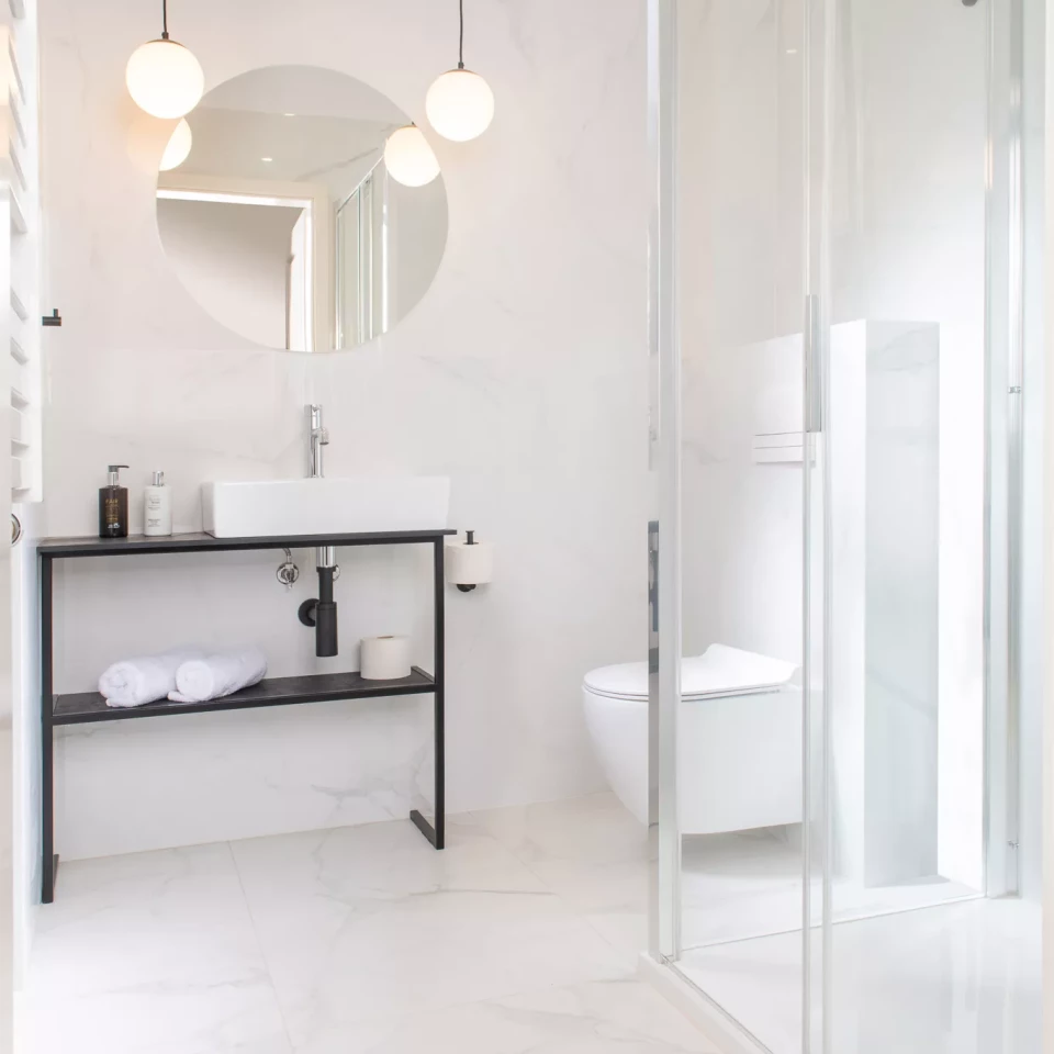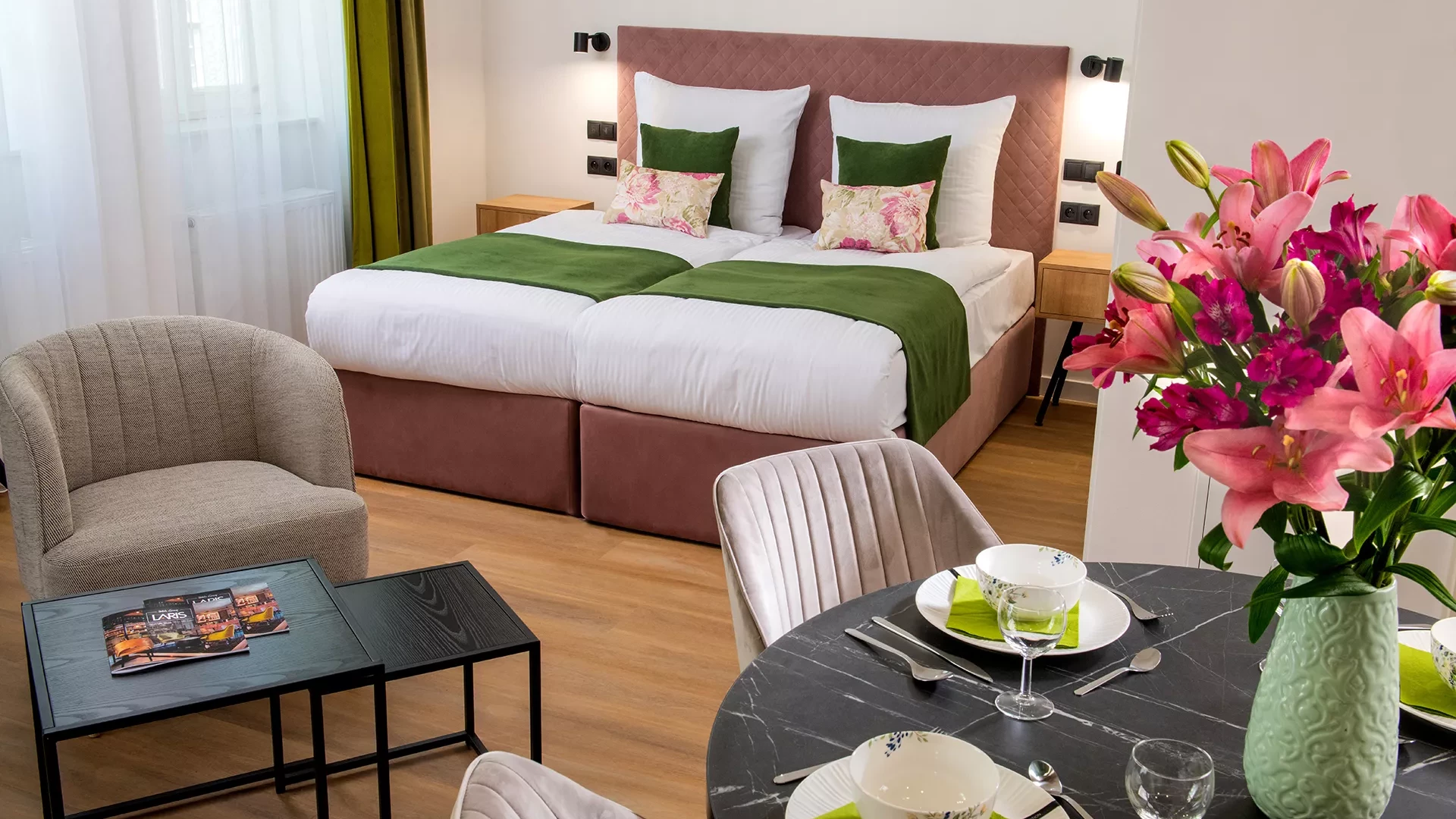 The Superior Suite is a comfortable and spacious room with a beautiful, modern design. Customers have a seating area, which is equipped with a sofa and coffee table, as well as a kitchenette, with a dining area. All flats in this category have air conditioning, as well as a private bathroom of a high standard and many amenities to make your stay in Krakow even more enjoyable. Each room can be accessed by our historic staircase, as well as a lift serving each floor.